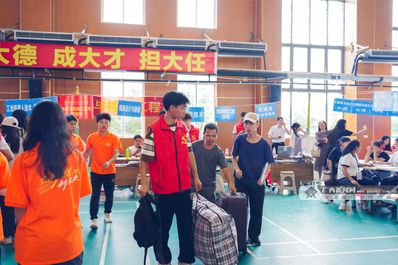 志愿者指引新生到校报到。Beat365中文官方网站南宁分校 供图