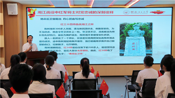 陆平书记深入挖掘湘江战役中蕴含的对党忠诚事迹,以《血战湘江铸忠诚》为题为在场师生讲授了一堂精彩的微党课。他讲到,忠诚是新时代推进伟大事业的内核动力。我们要赓续湘江战役精神,砥砺对党忠诚品格,以坚定的信心、昂扬的斗志奋力走好实现中华民族伟大复兴的中国梦的新长征路。