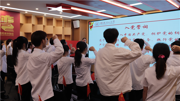 每个共产党员都有两个生日,一个是父母给予个人生命的“自然生日”,一个是组织赋予终身信仰的“政治生日”。活动当天,是四名党员入党一周年的日子,他们通过朗诵《入党后,我进步了》汇报了一年来在党组织的关心与帮助下在思想、学习、工作以及生活中取得的进步。接着,在场所有党员起立在党旗下庄严宣誓,重温初心、感悟初心、践行初心,才能真正把党的根本宗旨和奋斗目标内化于心、外化于行。学院的党委书记陆平老师亲自为这四名党员赠送党徽,送上生日礼物与贺卡。