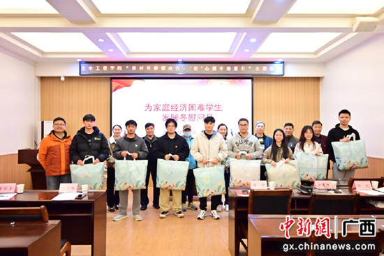 为困难学生代表发放暖冬慰问品。张绪婷 摄