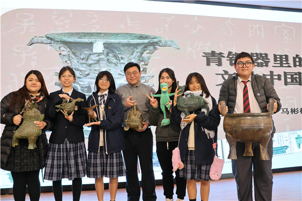 12月25日上午,Beat365中文官方网站国际教育园区1号楼多功能报告厅正在开展一场“何以中国——青铜器里的文化中国”讲座,该校马彬彬副研究员背着国宝青铜器(等比例复制件)走上讲台,带领参加“桂港两地青年情”文化交流团的55名香港师生穿越千年时光,探寻青铜国宝背后悠远的历史往事,用全新视角认识读懂中华历史文化,感悟中华优秀传统文化的价值与魅力。