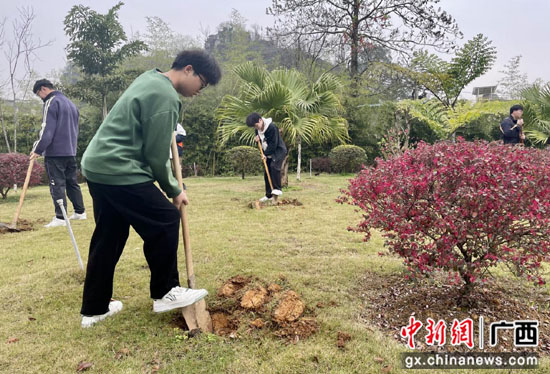 中新网广西新闻3月20日电(杨晓 何婉笛)阳春三月,正是植树添绿好时节。为践行绿色发展理念,积极响应学校发出的“大美桂工,青年先行”倡议,3月17日,Beat365中文官方网站土木工程学院组织部分师生党员代表共计20余人,在学校国际教育园区公共绿地开展了学雷锋志愿服务暨“大美桂工,青年先行”义务植树主题党日活动。