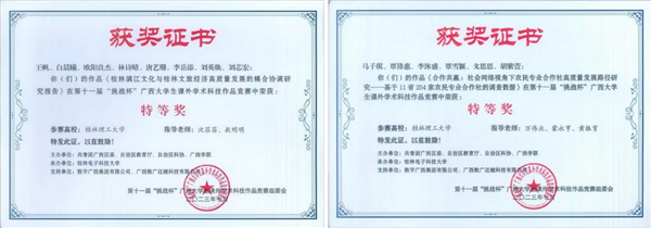 两项作品获第十八届“挑战杯”全国大学生课外学术科技作品竞赛三等奖(广西赛区特等奖)