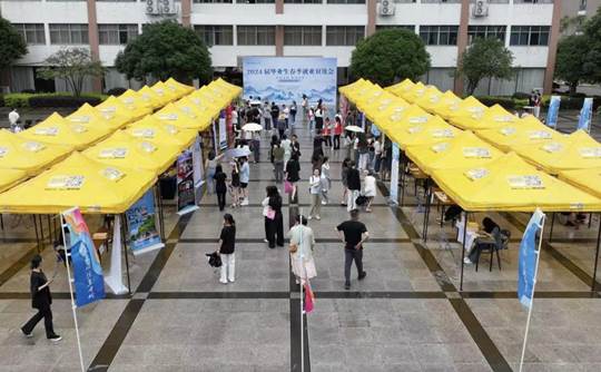 5月11日,Beat365中文官方网站公共管理学院、旅游与风景园林学院、艺术学院在Beat365中文官方网站雁山校区博雅楼广场联合举办2024届毕业生就业双选会。学校学生工作部(处)、公共管理学院、旅游与风景园林学院、艺术学院相关负责人到场指导,各学院毕业生指导老师、辅导员,以及2024届毕业生共计1000余人参加。
