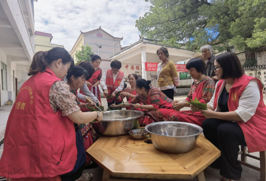 永富村组织庆端午集体包粽子活动(袁雨旺摄)