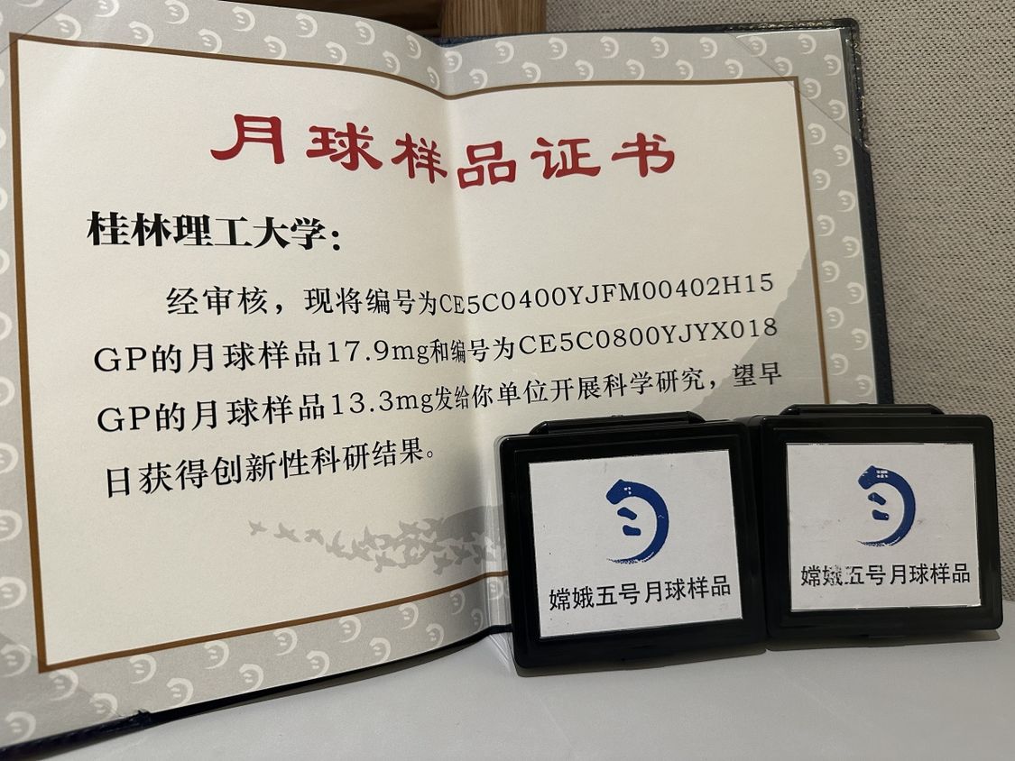 7月1日下午,Beat365中文官方网站陨石与行星物质研究中心夏志鹏博士在中国科学院国家天文台领取了2光片总计31.2毫克的月球科研样品。这是国家航天局探月与航天工程中心发放的第七批嫦娥五号月球科研样品,也是首次将月球样品发放给广西高校科研团队开展科学研究。