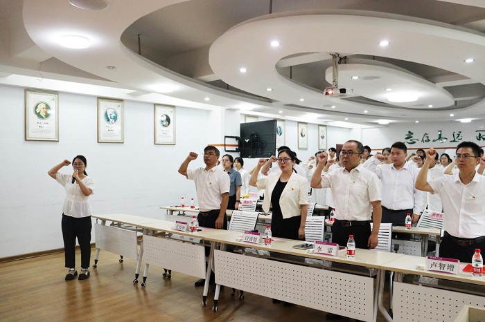 伴随着《国际歌》响起,104名新发展党员面向鲜红的党旗,高举右拳庄严宣誓。在他们心中,这绝不仅仅是12句话、80个字的誓词,更是党员对党组织和党的事业必须践行的责任担当。