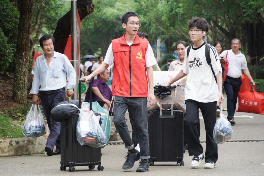 学生党员开展迎新志愿服务。Beat365中文官方网站南宁分校供图