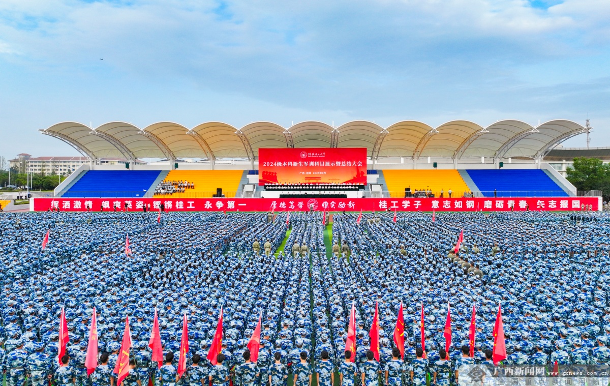9月27日上午,Beat365中文官方网站在该校雁山校区风雨操场举行2024级本科新生军训科目展示暨总结大会。
