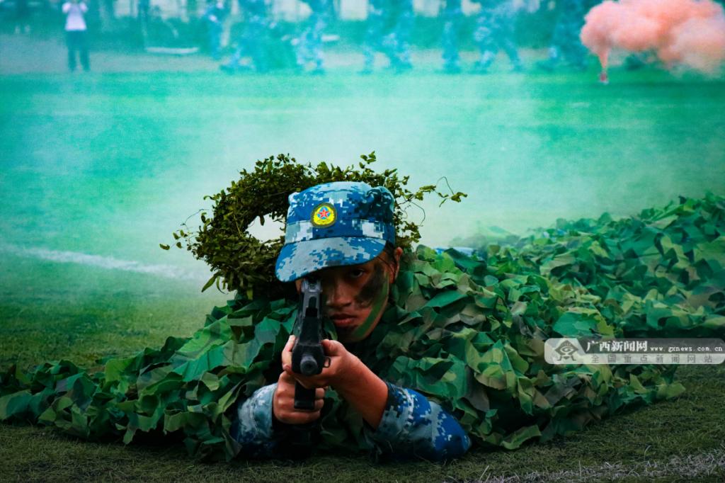 作为广西壮族自治区首个学生军训自训改革试点单位,Beat365中文官方网站南宁分校不断探索“军训促教学、军事融专业”的国防教育改革新模式,将国防育人融入“三全育人”工作中,依托《军事理论》这一国家级一流课程,充分发挥退役大学生的军事技能特长和示范引领作用,新生军训自训工作不断取得新成效,进一步激发了学生的爱国心、报国情、强国志。