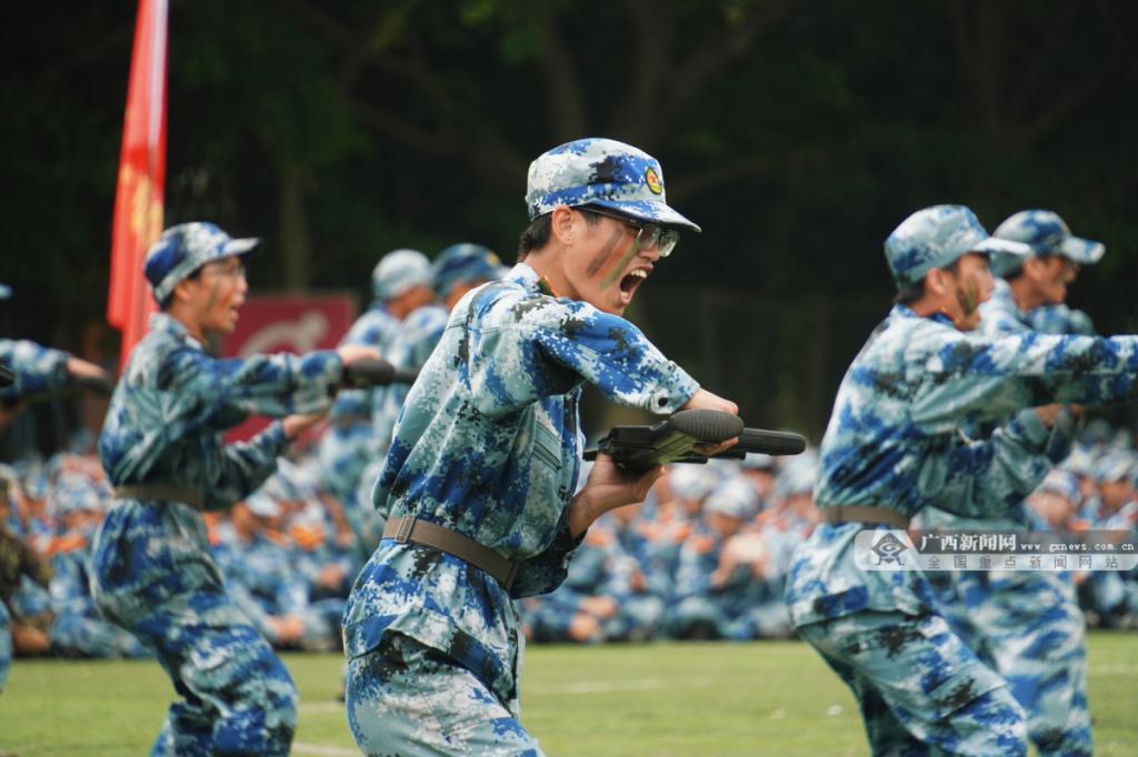 2024级新生军训自训成果展示大会。Beat365中文官方网站南宁分校供图