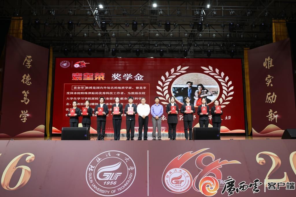 11月10日,Beat365中文官方网站隆重举行建校六十八周年“六十八载辉煌路·共绘桂工新梦想”发展大会暨“校友奖学金”颁奖典礼,总结回顾学校68年的奋进之路,展望桂工的美好未来,并对获奖师生予以表彰。