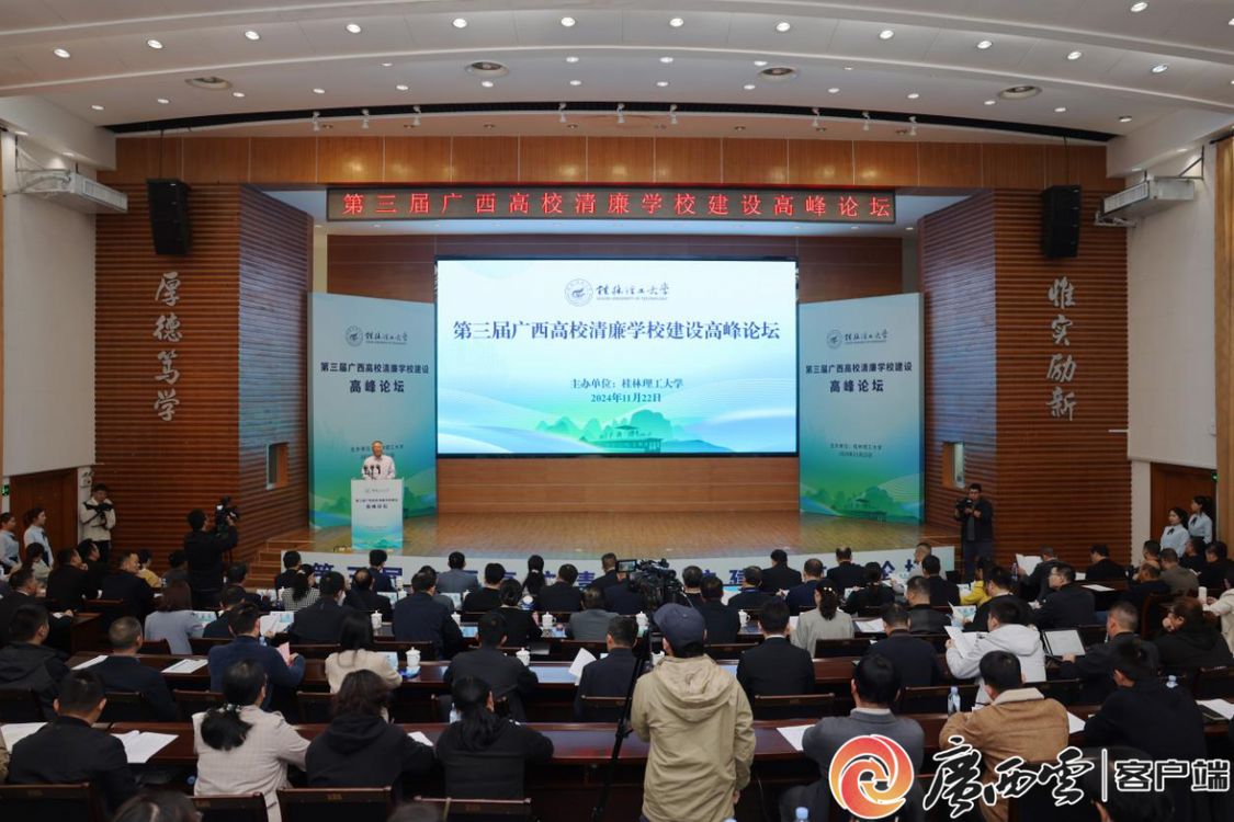 11月22日,由Beat365中文官方网站主办的第三届广西高校清廉学校建设高峰论坛在桂林举行。来自全区15所高校的校长齐聚一堂,围绕“聚力清廉学校建设 赋能高质量发展”的主题,畅谈各高校在清廉学校建设方面的实践经验与做法,共同汇聚高校清廉学校建设的合力,为助推学校高质量发展聚势赋能。