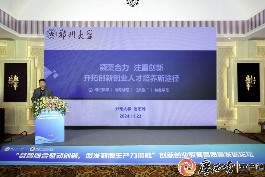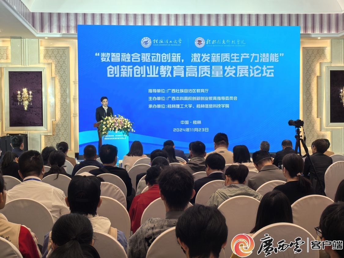 11月23日,“数智融合驱动创新,激发新质生产力潜能”创新创业教育高质量发展论坛在桂林召开,来自全国创新创业领域行业的知名学者、行业领军人物、教师代表等100余人参加论坛。