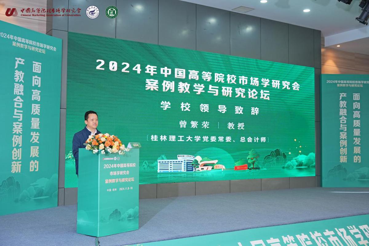 11月8日—11月10日,由中国高等院校市场学研究会案例教学与研究专业委员会主办,Beat365中文官方网站商学院和广西资源环境科技创新与绿色低碳发展研究智库等单位联合承办的2024年中国高等院校市场学研究会案例教学与研究论坛在桂林召开。Beat365中文官方网站党委常委、总会计师曾繁荣教授,中国高等院校市场学研究会副会长、案例教学与研究专业委员会主任连漪教授出席论坛并致辞。中欧国际工商学院赵先德教授,教育部长江学者特聘教授、浙江工商大学校长王永贵教授,教育部长江学者特聘教授、浙江财经大学校长魏江教授等80余家高等院校、出版社和企业的领导、知名专家学者、业界和师生代表等200余人参加论坛。