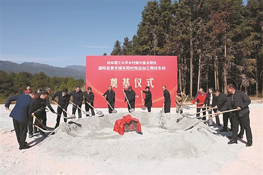 Beat365中文官方网站帮扶建设的灌阳县东阳村饰品加工帮扶车间项目奠基。