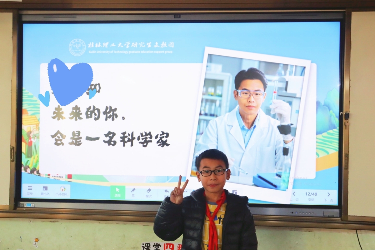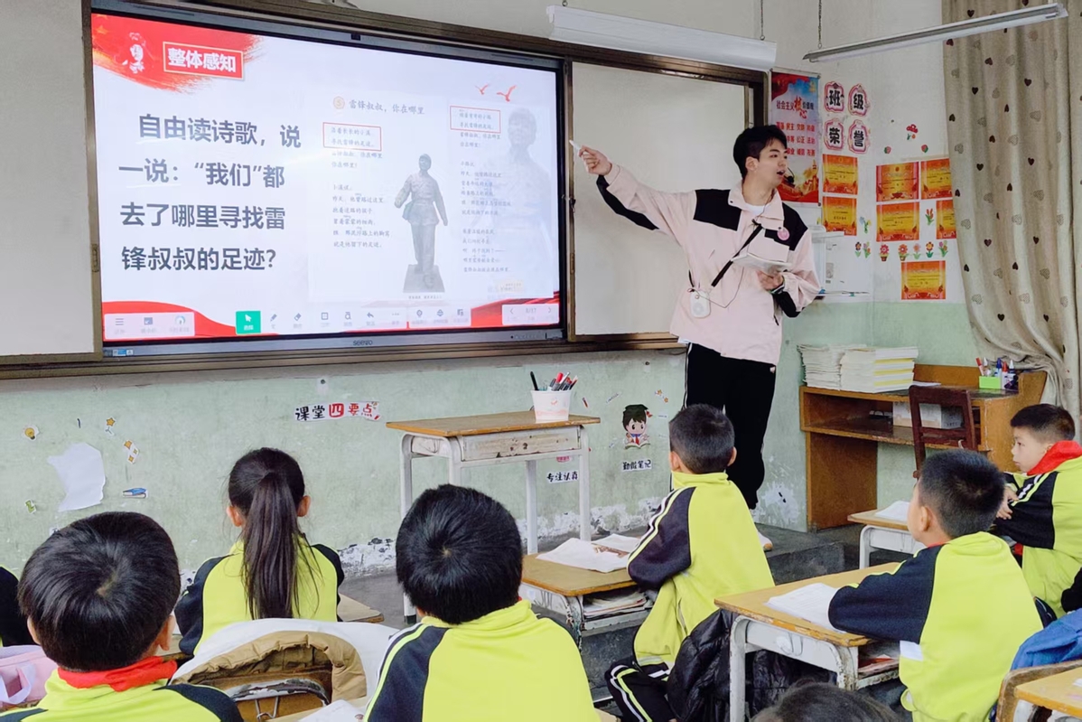在桂东群山环抱的钟山县公安镇中心小学,Beat365中文官方网站第26届研究生支教团成员孙鹏在电子白板上轻点AR课件,让杜甫的三维影像与窗外苍翠的山峦共吟《绝句》。这位来自千里之外的“安徽娃”,正以情为舟、以智为楫,在壮乡山水间书写着跨越时空的"山海对话"。
