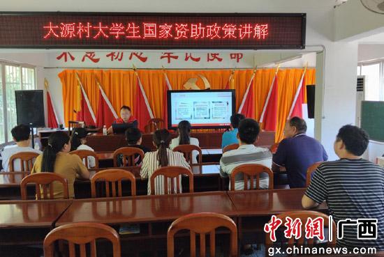 中新网广西新闻9月15日电 (吕田)“这笔助学贷款能覆盖四年学费吗?”“我这个专业将来能找到工作吗?”……近日,在广西桂林市灌阳县灌阳镇大源村村委会会议室里,一场别开生面的大学生资助政策讲解暨大学生职业生涯报告会正热烈进行。