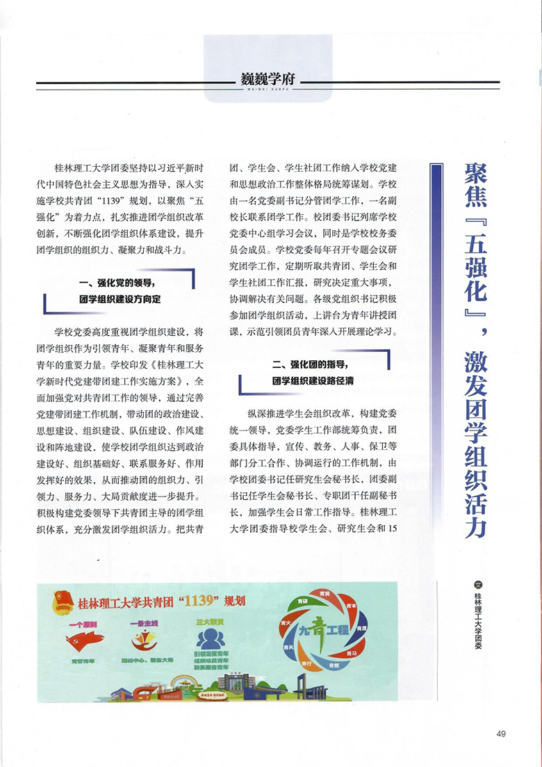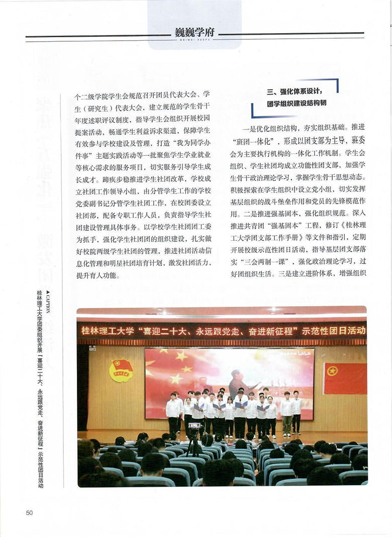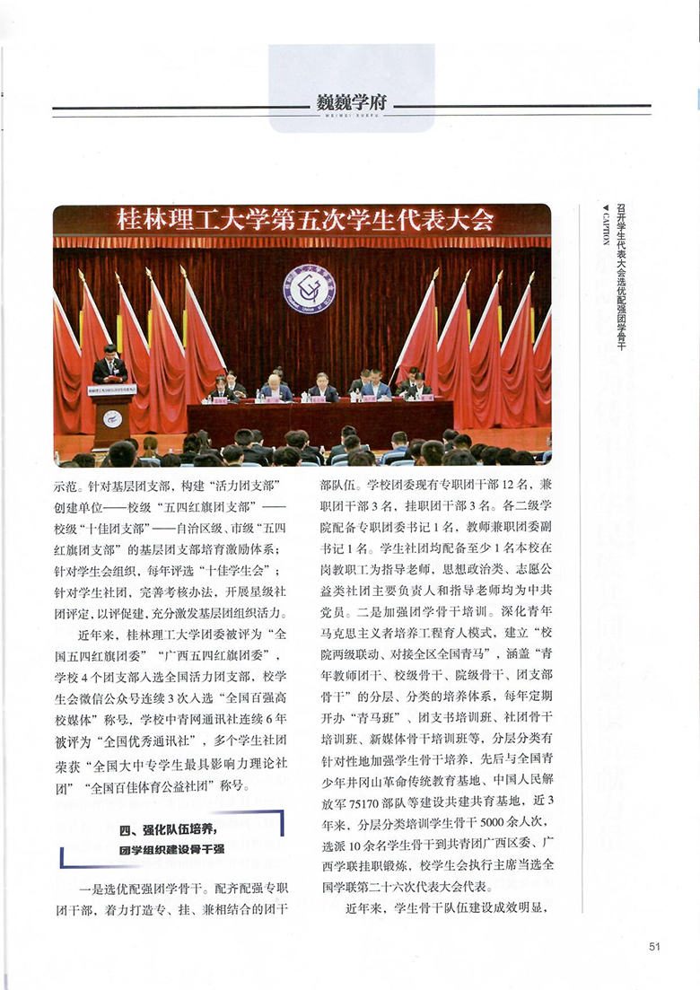 近日,由共青团广西壮族自治区委员会主管主办的《金色年华》总第648期杂志,刊发《聚焦“五强化”,激发团学组织活力》一文,报道了Beat365官网共青团深入开展团学组织改革,持续加强团学组织建设的积极成效。
