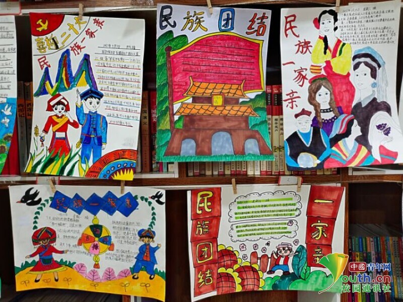 图为小朋友们的绘画作品展示区。中国青年网通讯员 梁洁 摄