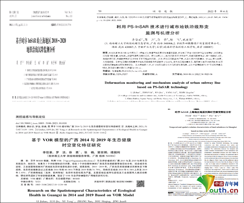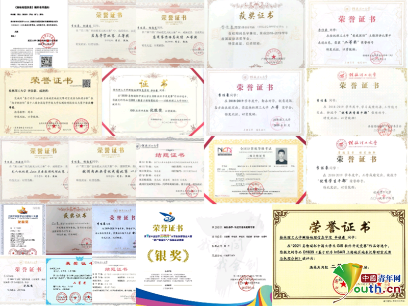 本科生涯中他共参与了7个项目的研究,发表论文10余篇,在“大学生创新创业大赛”、“互联网+”、“挑战杯”、“南方测绘杯”、全国工程测量学术年会等比赛中获得8个奖项。