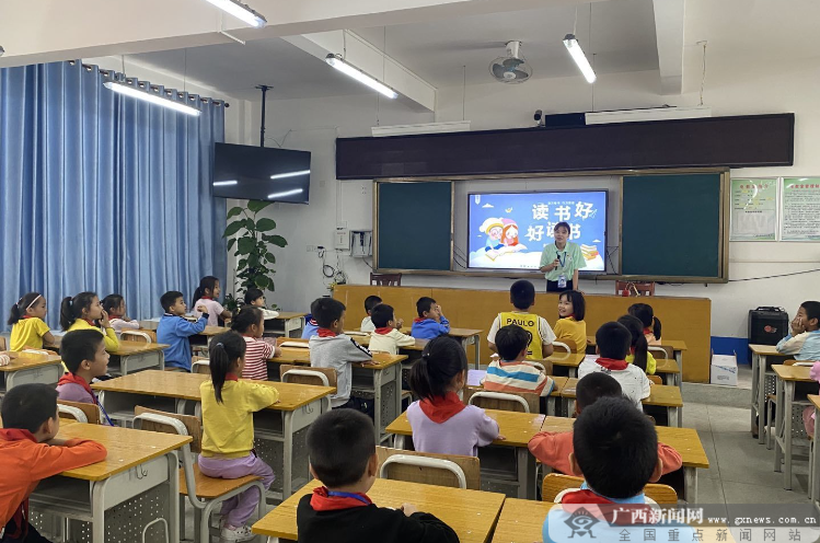 图为志愿者在昌平乡小学开展读书分享会。Beat365中文官方网站南宁分校供图