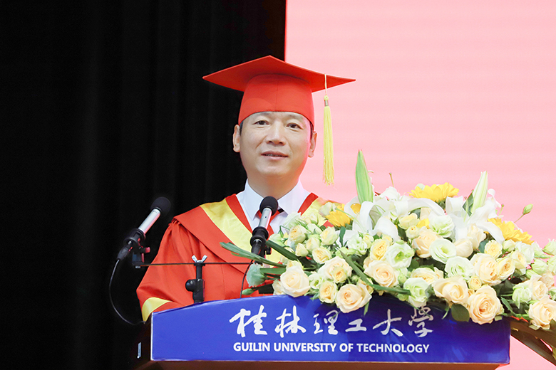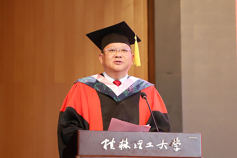 解庆林表示,同学们不断拼搏奋进、筑梦青春、努力成长,涌现出了大批优秀模范,是学校的光荣与骄傲!希望大家牢记领袖嘱托,秉承“艰苦创业、敬业奉献、团结协作、开拓创新”的“桂工精神”,在实践锻造中不断增强做中国人的志气、骨气、底气,努力将个人理想融入到民族复兴的伟大事业中!希望全体毕业生要做信念坚定、脚踏实地的“有志青年”,做刻苦学习、知行合一的“有识青年”,做崇德向善、守正创新的“有为青年”,要以青春之我、奋斗之我,为民族复兴铺路架桥,为祖国建设添砖加瓦,不负党的期望、不负人民期待、不负历史使命。无论何时何地,母校永远是广大桂工学子的坚强后盾,欢迎大家常回家看看!