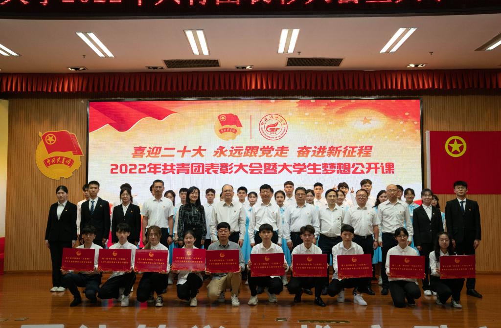 在表彰环节,与会领导分别为荣获2021年度全国高校活力团支部、2021年度桂林市“两红两优”先进集体和先进个人、学校共青团“十佳”系列先进集体和先进个人以及在各类社会实践、创新创业和校园文化活动中获奖的先进集体和先进个人颁奖。