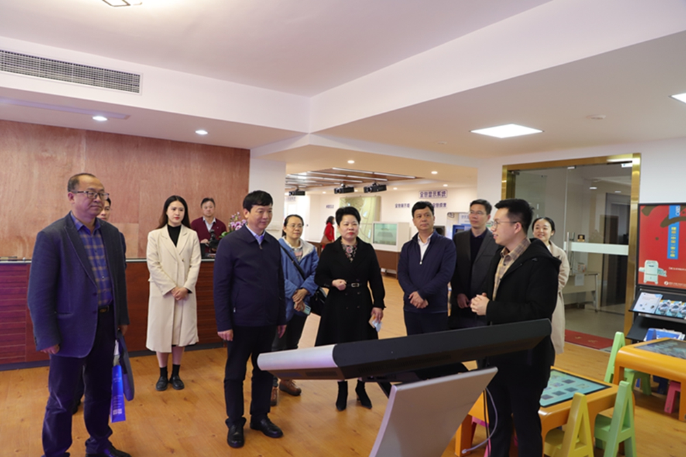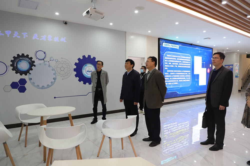 解庆林一行参观了云璟科技的生产车间,体验了该公司的最新产品,双方还就进一步开展人才培养、校企研发等方面合作展开交流。随后,解庆林一行参观了广西萃发科技有限公司,并实地体验了该公司的VR教学应用、智慧教育照明系统等。