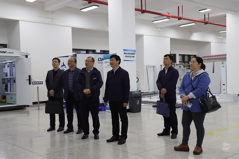解庆林(前排右二)一行参观了云璟科技的生产车间。(叶进杰 摄)