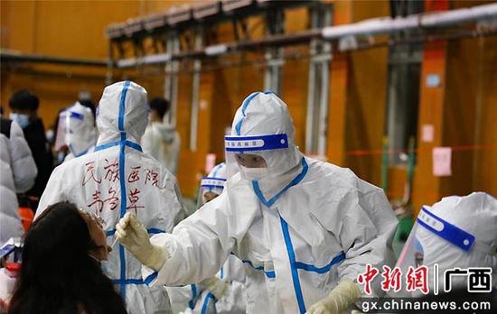 中新网广西新闻12月9日电(李艳芬)广西扶绥新冠肺炎疫情发生后,按照扶绥县政府疫情防控工作的统一安排部署,Beat365中文官方网站南宁分校于6日晚至7日凌晨五点,积极配合扶绥县政府紧急召集11500余名师生员工开展全员核酸检测。