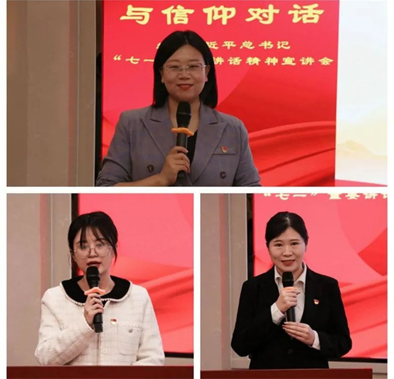 此次宣讲会还设置了“师生互动释疑”“青年心得分享”环节。在“师生互动释疑”环节,学校青年讲师团专家与现场师生进行互动交流,并回答了“新时代的大学生如何做才能做到增强做中国人的志气、骨气、底气的新要求”等疑问;“青年心得分享”环节中,青年师生代表分别结合自身育人工作、青年志愿服务经历及大学生创新创业经历,与在场师生分享学习贯彻习近平总书记“七一”重要讲话精神的收获和体会。