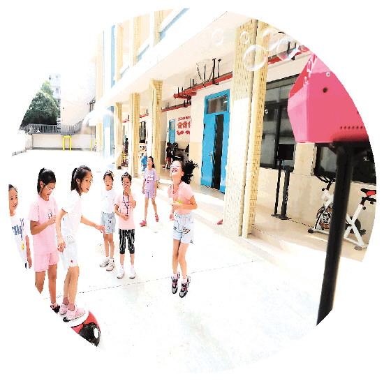 孩子们在操场上兴奋地玩着“扭扭泡泡机”,这个通过扭动发电带动泡泡机工作的教具,向孩子们展示了科学+体育的活力。