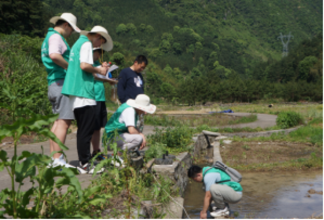 湿地突围第一、二、三代团队在桂林市全州县毛竹山村进行湿地健康情况调研 黄英才摄
