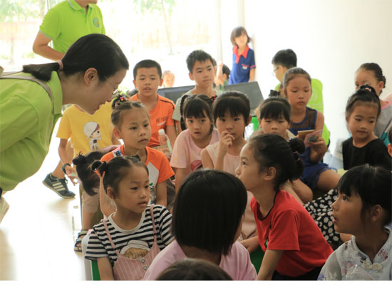 Beat365中文官方网站测绘地理信息学院教师与孩子们进行交流。Beat365中文官方网站测绘地理信息学院供图