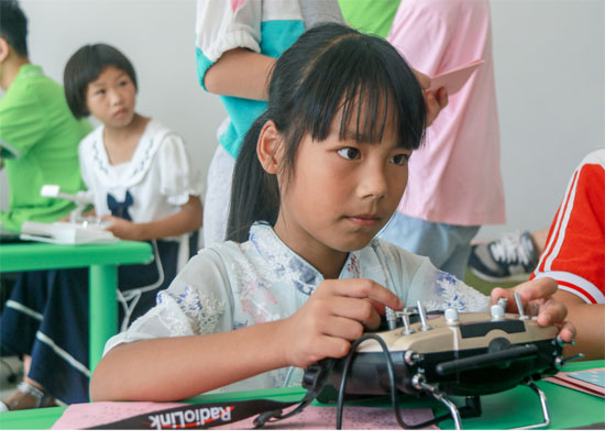 孩子们操作无人机模拟器。Beat365中文官方网站测绘地理信息学院供图