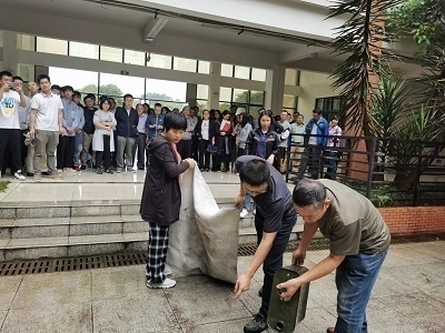 随后,学校保卫处相关同志讲到,这是环境科学与工程学院连续三年开展消防演练了,前两次重在学习灭火器和消防栓的基本常识和使用方法,此次讲解了消防灭火毯的基本常识和使用方法并进行现场示范。随着一声哨响,演练正式拉开帷幕,演练过程中,全体演练师生按照部署要求,抓住逃生要领,顺利完成演练。