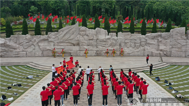 在纪念园凭吊广场,青年师生们深切缅怀红军烈士,向红军烈士敬献花篮,行鞠躬礼,表达对红军烈士崇高的敬意。李雨带领青年师生们重温入团誓词,铿锵恢宏的誓词,强烈震撼着在场的每一位团员青年。