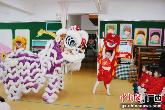 公益展演活动在气势震撼的音乐声中开始,“瑞狮点睛”、“祥龙共舞” 、“双龙戏珠”等传统龙狮表演项目一幕接着一幕。为适应幼儿园小朋友们的观赏,舞狮队一改往日表演风格,先是趴在教室门口卖萌,随后进入教室内对着孩子们撒娇,场面十分欢快,精彩纷呈的表演引来儿童们和老师的阵阵喝彩。表演结束后,孩子们意犹未尽,他们围在小狮子身边,欢呼雀跃,孩子们惊呼:“原本只能在电视里看到的舞龙舞狮表演,竟然来到了眼前。”
