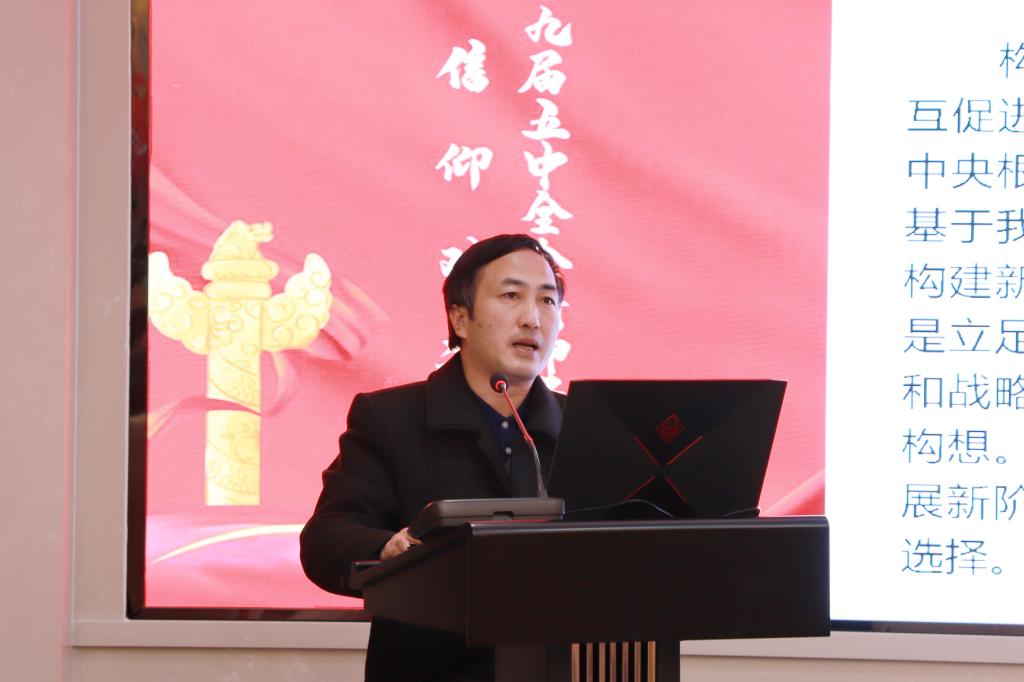 学校党委常委、宣传部部长叶昊老师以《牢牢把握构建新发展格局的战略构想和重要着力点》为题,对充分认识加快构建新发展格局的重大意义、正确理解构建新发展格局的科学内涵、牢牢把握工作的着力点进行了系统阐释。