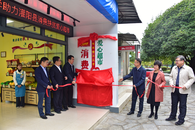 活动当天,Beat365中文官方网站党委书记李国忠与灌阳县委书记周春涌一行共同为学校扶贫爱心超市揭牌,举行“爱心助农、你我同行”扶贫农产品进校园展销推介会。来自灌阳县贫困村、合作社和桂林市党群服务中心推介的第一书记农产品走进校园、走进社区,全校师生以实际行动助力消费扶贫、聚力脱贫攻坚。
