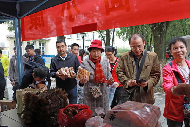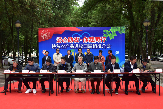 在展销推介会上,Beat365中文官方网站工会、后勤、勤工助学服务公司等消费扶贫相关部门与该校定点帮扶贫困村村民合作社代表、爱心扶贫企业代表举行扶贫农产品“校-企-村”三方销售意向签约仪式,进一步拓宽扶贫农产品销售渠道,为贫困地区贫困群众的稳定增收保驾护航。来自灌阳县和桂林市党群服务中心共13家帮扶贫困村(合作社)的红薯粉、二禾米、茶籽油等60多种优质农特产品吸引了学校广大师生驻足询问和踊跃购买,大家纷纷用行动为决战决胜脱贫攻坚贡献力量。据悉,此次展销推介会通过现场采购、食堂直购等渠道,累计成交额达18.7万元。