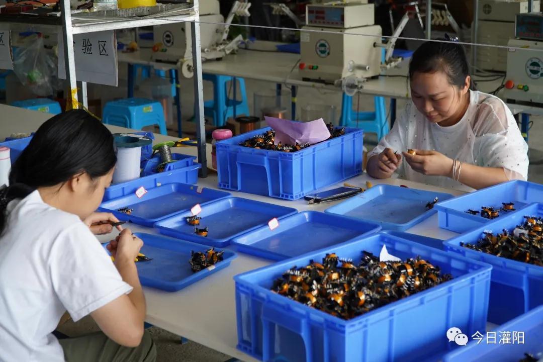 2019年初,东阳村食用菌产业扶贫车间因技术原因发展受困而逐渐成为了闲置资产,“闲置的厂房如何使用?“如何盘活村级固定资产?”成为王洪让和村两委干部面临的难题。为了盘活这一村级固定资产,王洪让和村支书王继超一起跑市场,找资源,终于在2019年3月,得知可以引进电子厂元器件加工企业来村的消息,王洪让立即联系到了灌阳县创博电子科技公司,随后,带老板参观、规划村内闲置厂房、争取资金拓宽厂房前的道路、到黄关各村实地调研,不断地确定东阳村的投资优势,为推动灌阳县创博电子科技公司的顺利入驻提供条件。“之前因为家里有老人和小孩,没办法出去打工,才导致了贫困,现在不怕了,扶贫车间建起来了,在家门口就能直接就业。”贫困户变身为产业工人,如今东阳创博电子科技扶贫车间里已是一片忙碌的景象。