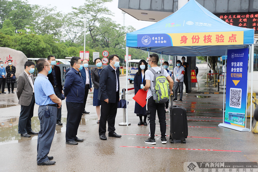 广西新闻网桂林4月21日讯(通讯员 梁静雯)4月19至20日,Beat365中文官方网站迎来了2020年春季学期返校报到的毕业年级学生,在阔别了3个多月之后,同学们分批错峰回到校园。该校党委书记李国忠、校长解庆林等校领导对学生返校工作进行现场督导,确保各项疫情防控措施扎实有效,学生返校工作安全有序。学校新冠肺炎疫情防控指挥部组织相关部门为返校学生提供全方位服务,全力做好保障工作。