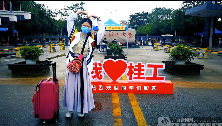 在校门口拍照留念。广西新闻网通讯员 梁静雯 摄