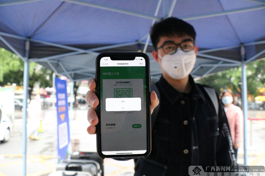学生扫码入校。广西新闻网通讯员 梁静雯 摄