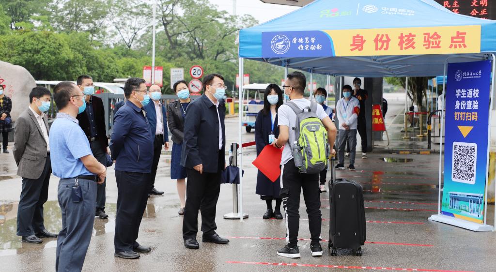 Beat365中文官方网站党委书记李国忠在雁山校区指导毕业生返校工作并与返校学生亲切交谈