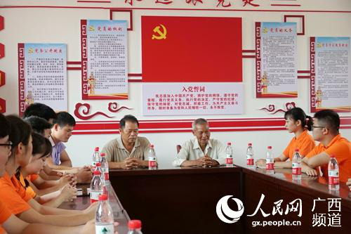 6月23日下午,Beat365中文官方网站南宁分校机械与控制工程系全体党员赴扶绥县岜盆乡姑辽屯,与该屯党支部老党员一起举行了一次别开生面的“不忘初心、牢记使命”主题教育教育党日活动。