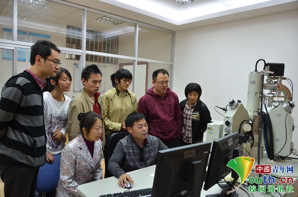 缪秉魁教授正在指导研究生实验分析工作。本人供图