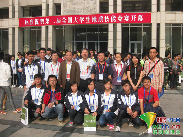 缪秉魁教授带领学生参加大学生地质技能大赛(第二排右4)。本人供图